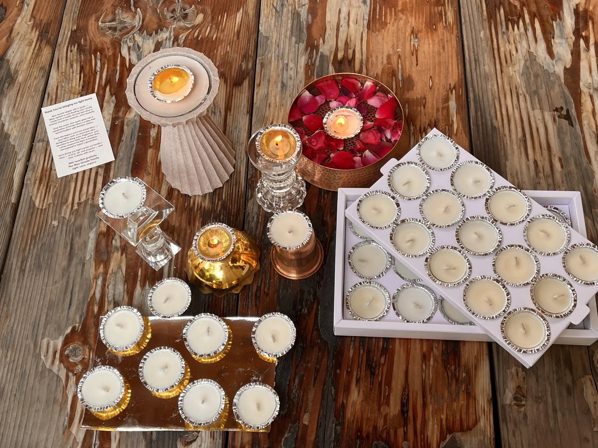 Our hand crafted, long lasting, and nature inspired aroma divas are designed to bring spiritual essence into your space. Carrying on the tradition of hand rolling wicks for diyas, each one of our candle is hand poured using soy wax and infused with aroma blends to appease the divine and bring calm to the soul.