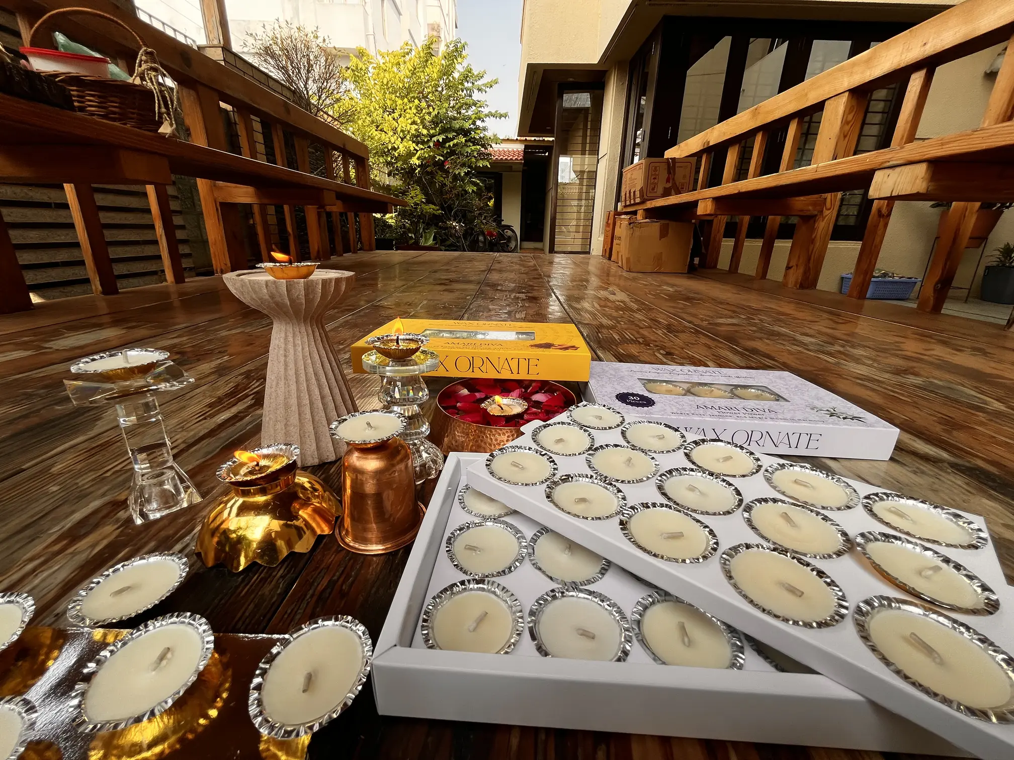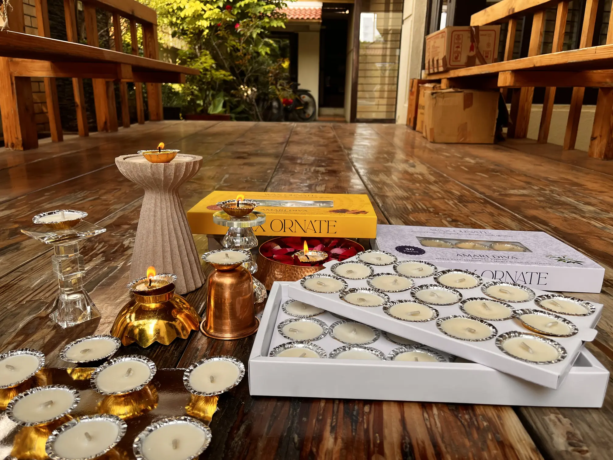 Amari diva features a silver top and gold base, which are more than aesthetics; they carry a symbolic intention inspired by Indian traditions, where both metals are known to represent purity, prosperity, and good fortune. Together, they reflect the sacred balance and auspiciousness, making these divas meaningful beyond their glow.